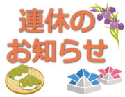 誠に勝手ながら、5月2日(土)~5月6日(水)は 休業とさせて頂きます。 よろしくお願い申し上げます。